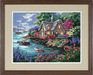 Dimensions printed tapestry kit. Take a tranquil trip to this delightful cottage nestled at the waters edge. Stitched on 14 hole printed canvas, this relaxing retreat would not be complete without the colourful flowers surrounding the quiet cove. Includes threads, needle and instructions.